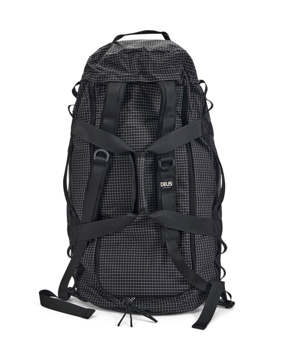 収納可能なバックストラップはダッフルとしてもバックパックとしても使用可能。完璧なアドベンチャーのお供になります。メインコンパートメントにはジップメッシュポケットとシューズ収納スペースを装備。ナイロン製リップストップ素材。