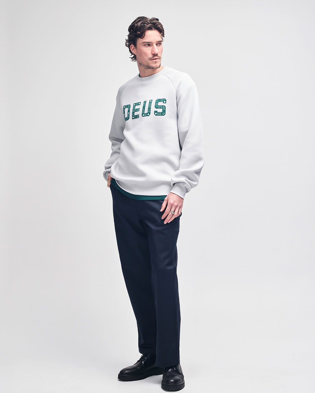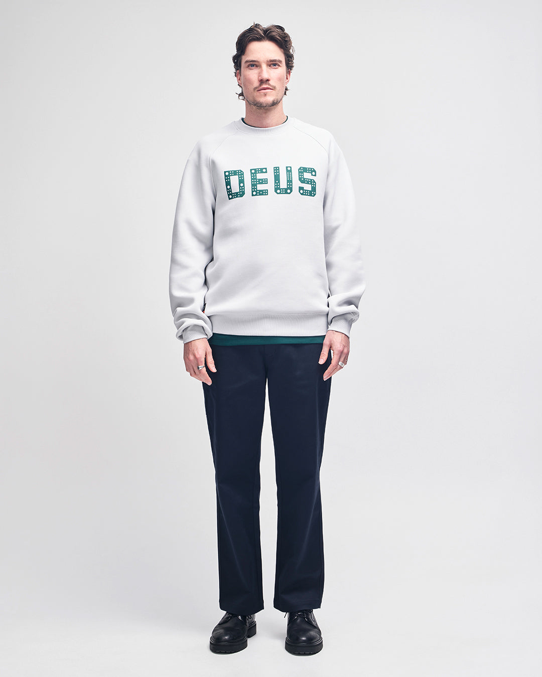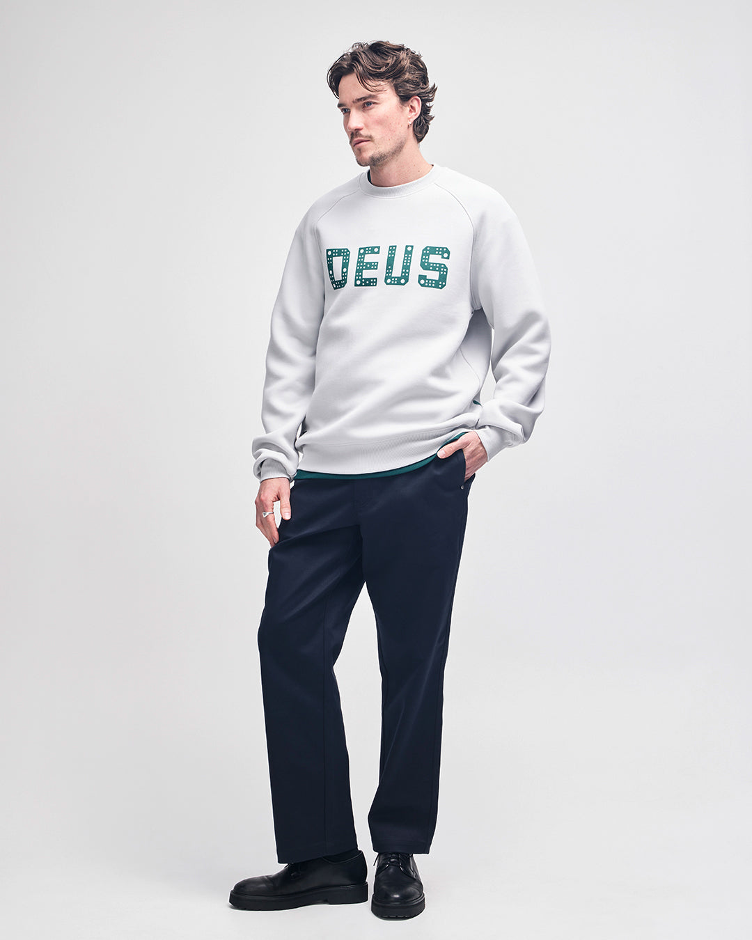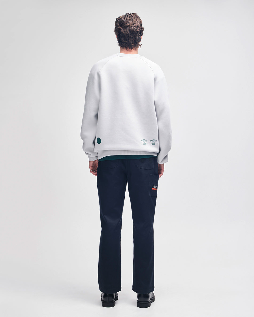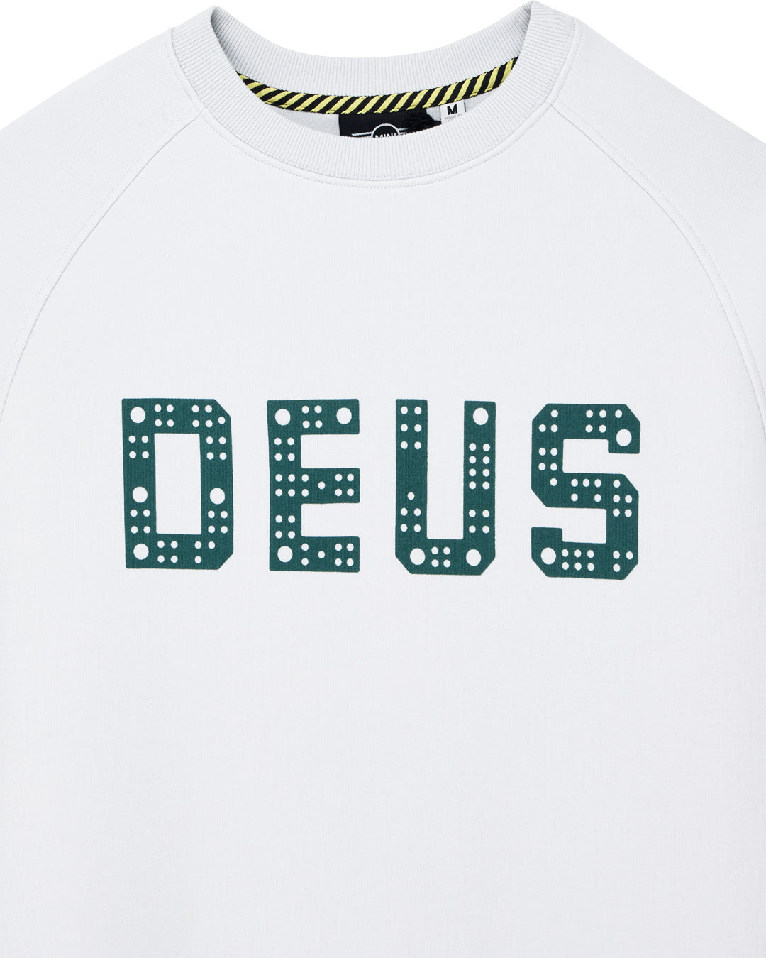 Deus Ex MachinaとMINIは、MINIとDeusのクルマに対する情熱の歴史的な遺産を称えるパートナーシップを結び、レースの伝統と現代的なデザイン感覚を見事に融合させたコラボレーションを実現した。その中心となるのは、Deus Ex Machinaによってカスタマイズされた、多くの人々に愛されているMINI John Cooper Worksである。ルーズフィットのクルーネックスウェット。胸と背中にDEUSオリジナルアートをプリント。バックネックにはアートテープディテール、裾にはブランドラベル。ヘビーウェイトのポリエステル・コットン・ボンデッド・フリース素材。ガーメントウォッシュ加工。