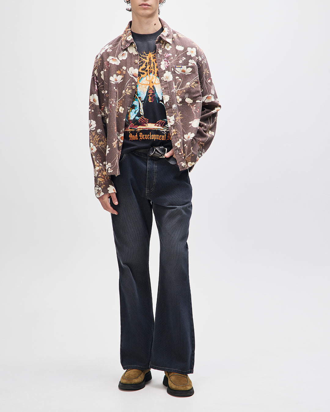 デウス・レコーズの変わらぬ理念のもと、この新しいドロップは巻き戻しと早送りを繰り返しながら、ノスタルジアを表現している。 大げさなシルエットと特注の花柄が、ミリタリスティックでスポーツドリブンなディテールと肩を並べ、個性的な表現を支持する。オーバーサイズフィットのフランネルシャツ。オリジナル総柄フラワープリント。ヴィンテージの風合いを施した、ピーチスキン素材。
