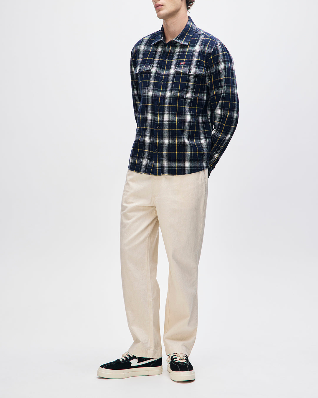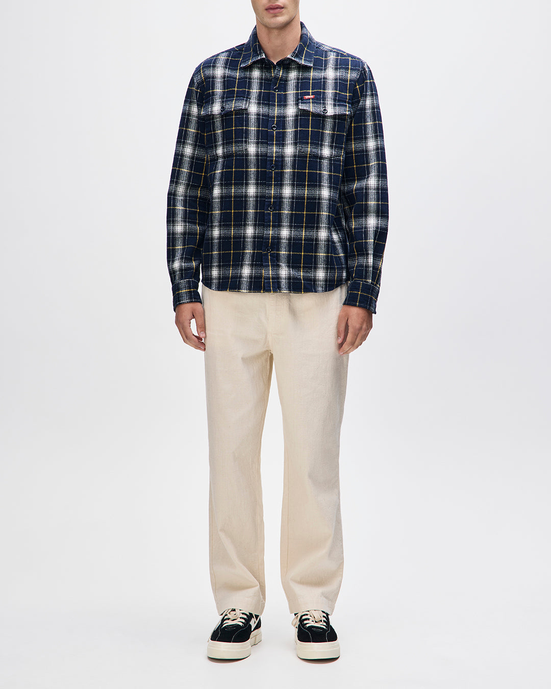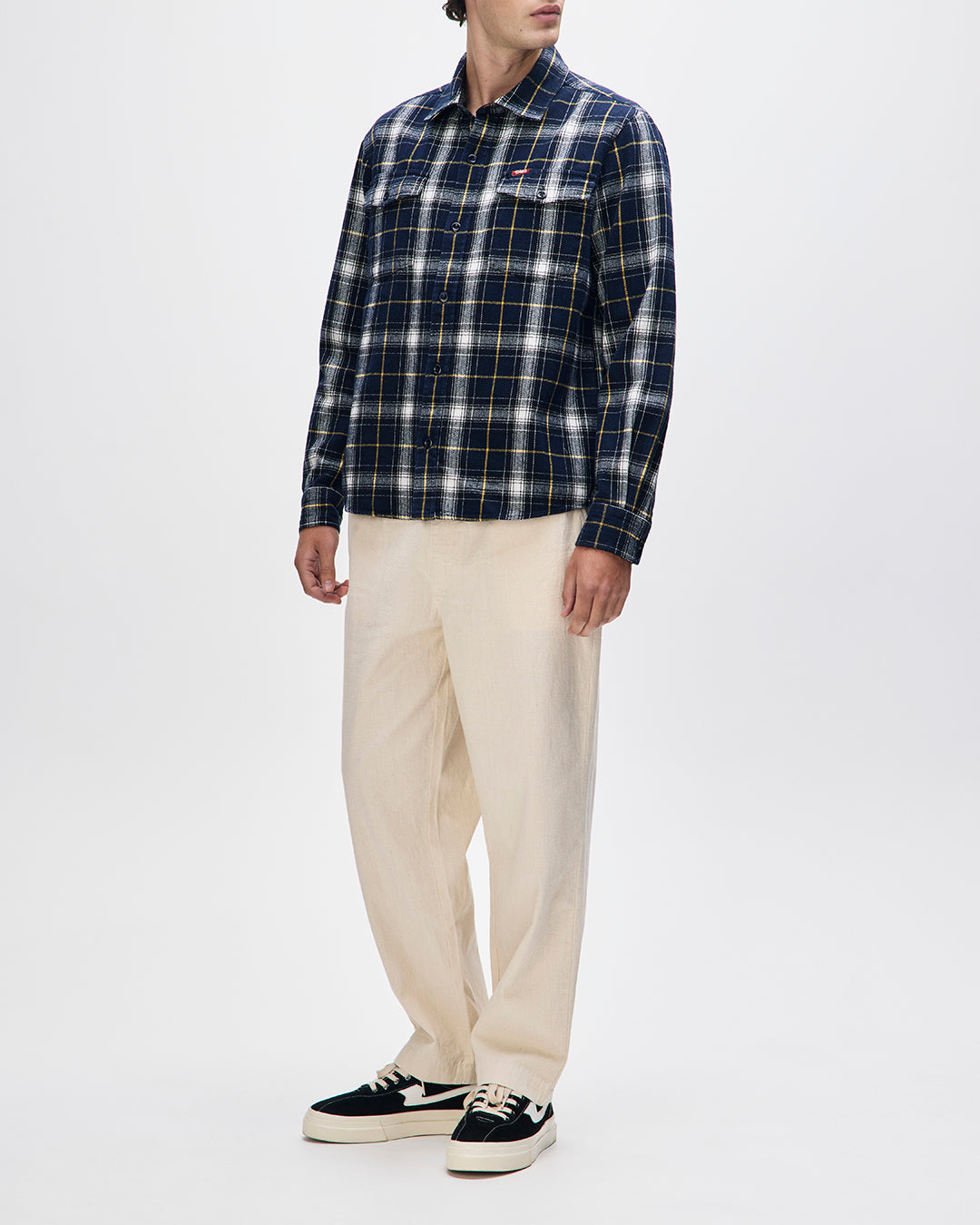 道端のピットストップや忘れ去られたハイウェイで飲むコーヒーが燃料となり、オイルまみれのノスタルジーとともに、充実した日々の感性が奏でられる。 レギュラーフィットのジャーメインチェックシャツは、ピットレーンのストライプとダストトレイルのカリスマ性を融合させている。レギュラーフィットのロングスリーブシャツ。ベーシックでカジュアルコーディネイトが利く、定番チェックシャツ。胸ポケットにブランドロゴ入りクリップラベル、胸にパッチポケット、フロントはリアルホーンボタンフライ。ブラッシュド・コットン。ストーンウォッシュ加工。