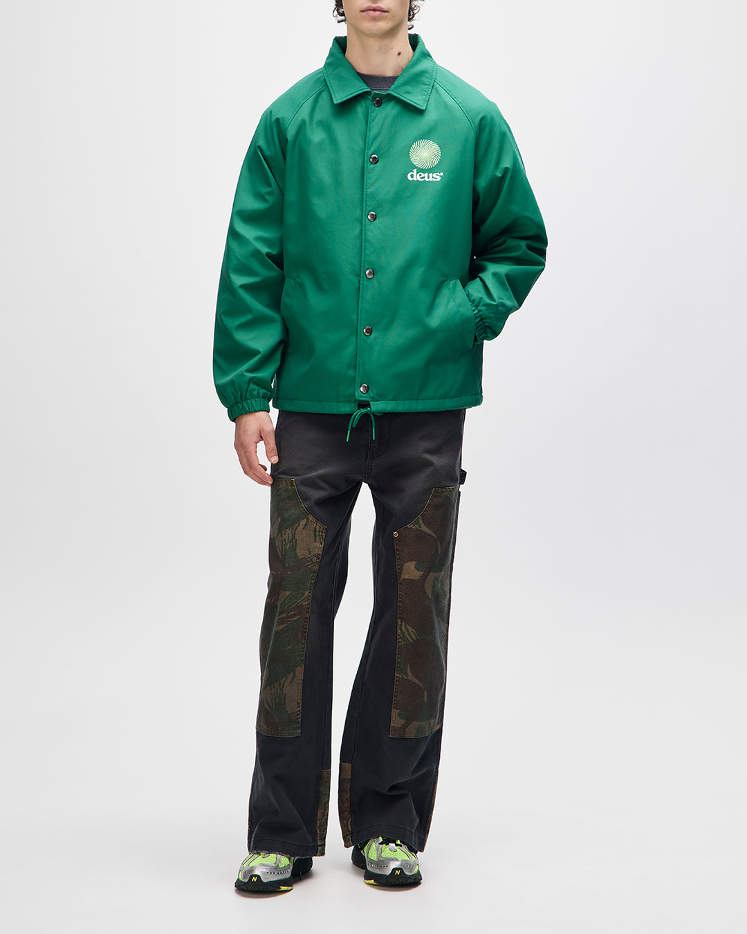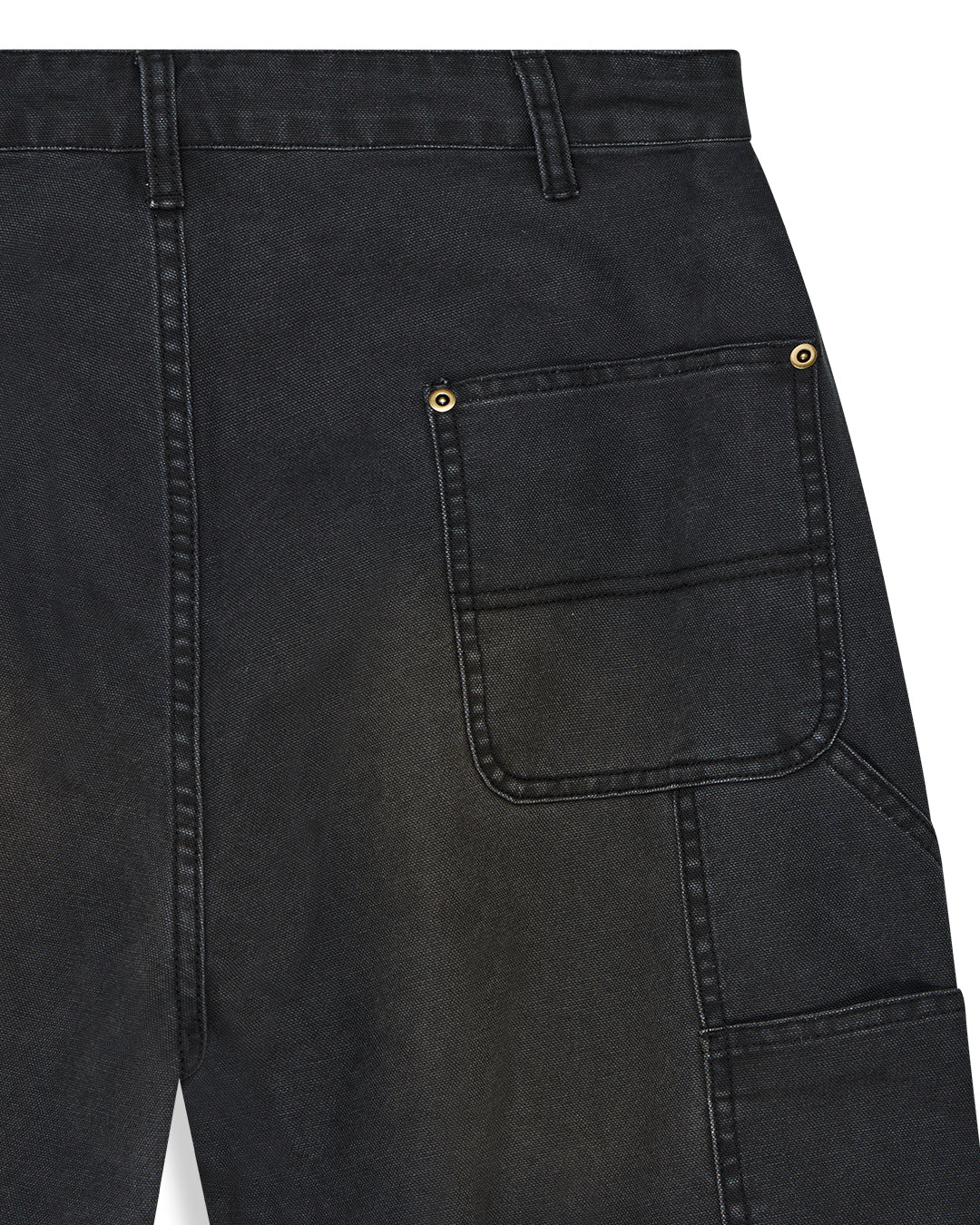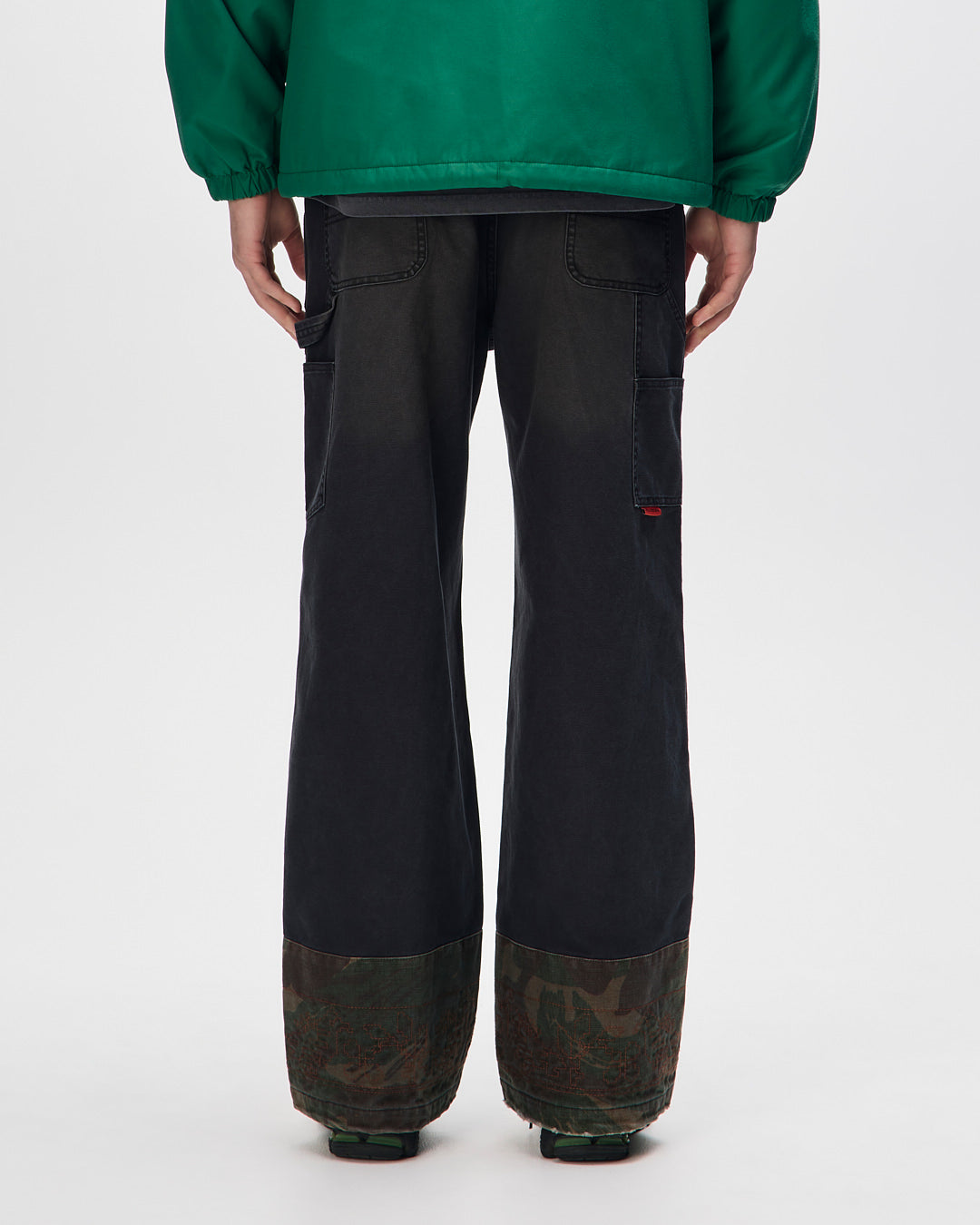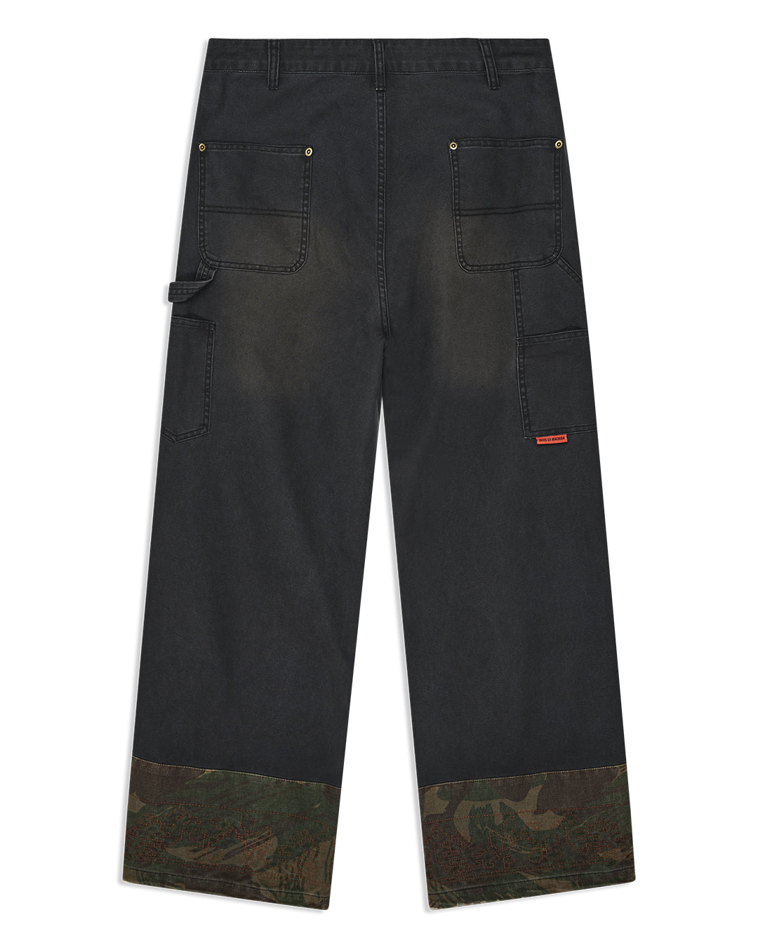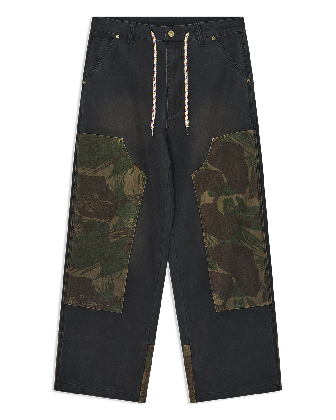 デウス・レコーズの変わらぬ理念のもと、この新しいドロップは巻き戻しと早送りを繰り返しながら、ノスタルジアを表現している。 大げさなシルエットと特注の花柄が、ミリタリスティックでスポーツドリブンなディテールと肩を並べ、個性的な表現を支持する。オーバーサイズ・フィットのダブルニーパンツ。膝パネルにカモフラージュパターンでコントラスト。ウエストにドローコード、ポケット口には真鍮のリベット、ハンマーループが付くペインターパンツモデル。 ガーメントダイのキャンバス生地。ウォッシュ、フェード加工。