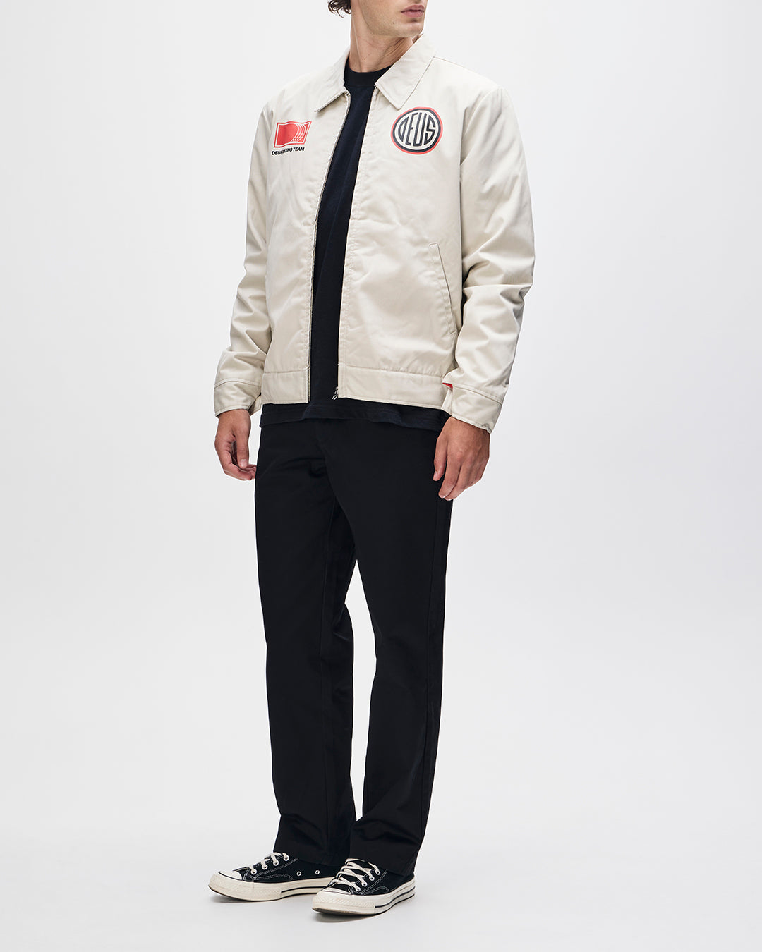 チーム・デウスはオフロードの伝統を見直し、90年代のモトクロス・スタイルをさりげなく取り入れている。 マルナス・チーム・ジャケットは、通気性に優れた素材とハイタッチ・スピリットを組み合わせている。胸にDEUSアートワーク刺繍ワッペンとプリントをあしらったリラックスフィットジャケット。ジップフロントクロージャー、コロゾナットボタン。裾と袖口で調節可能。ワックス防水加工を施したアウターシェル、ナイロンキルティングのライニング。ガーメント・ウォッシュ加工を施したポリエステル中綿入りジャケット。