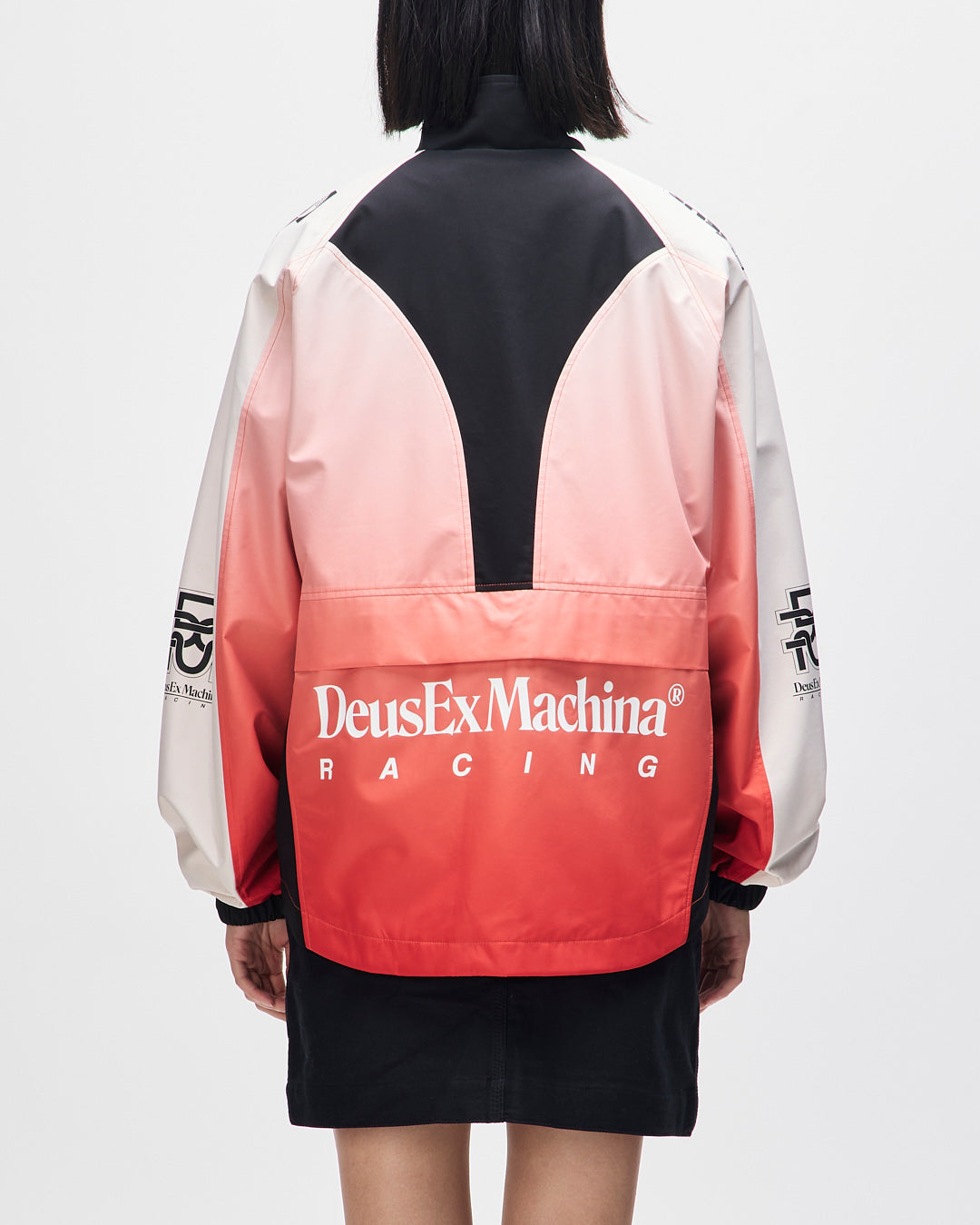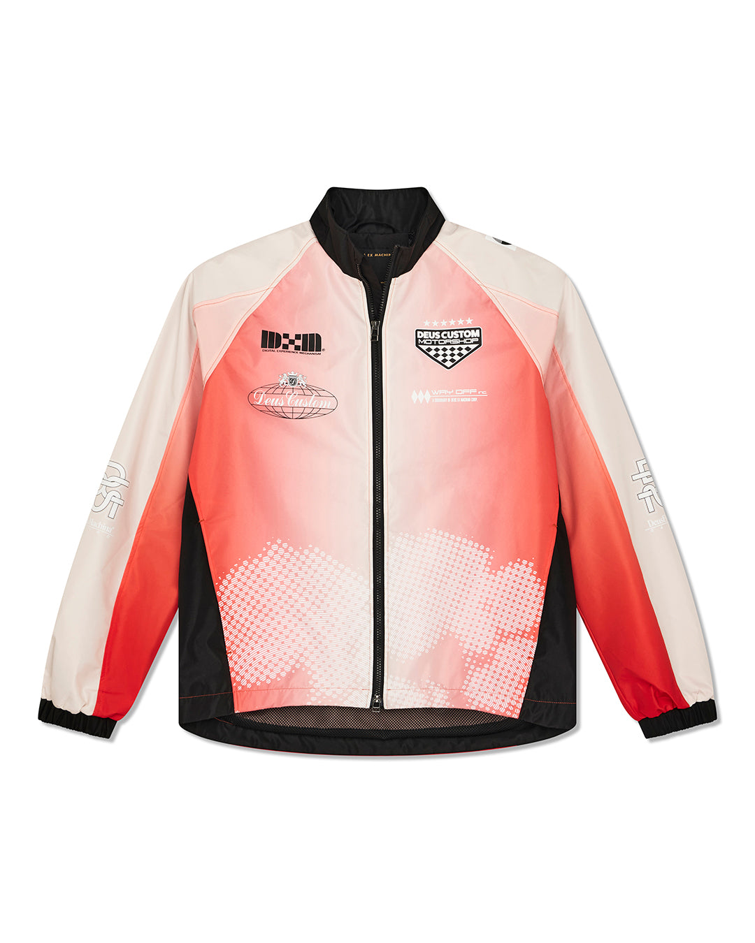 ミッドウエイトパネルジャケット 。 フロントジップのサイドポケット付き。移動時に活躍する大きなバックポケット。 Deus Ex Machinaのカスタムロゴワッペンとバックにはロゴプリント。 ポリエステルメッシュの裏地付き。