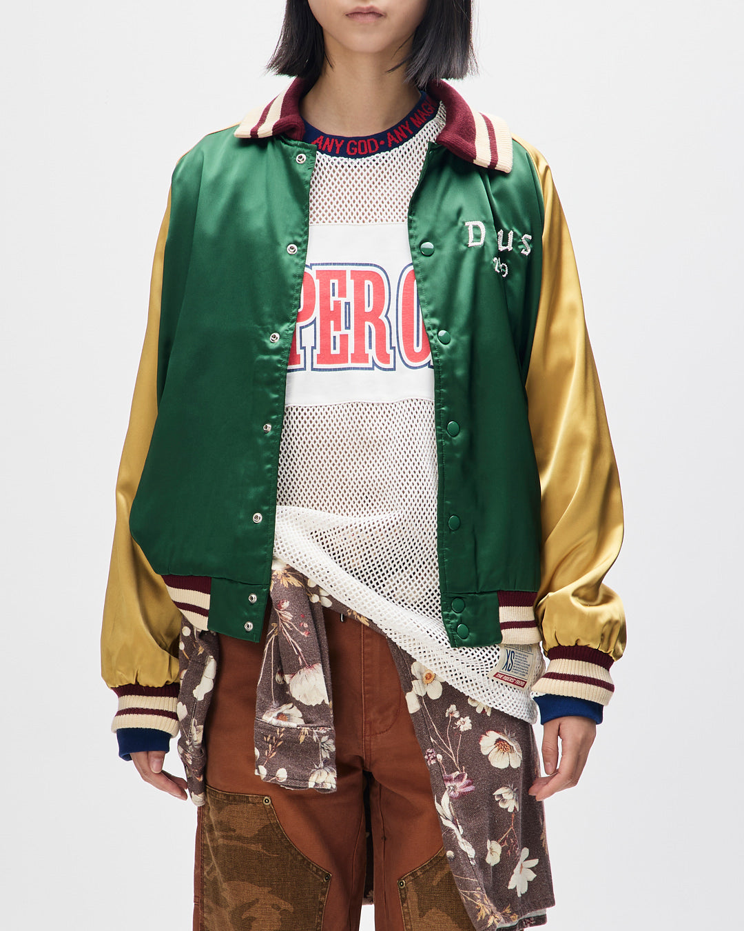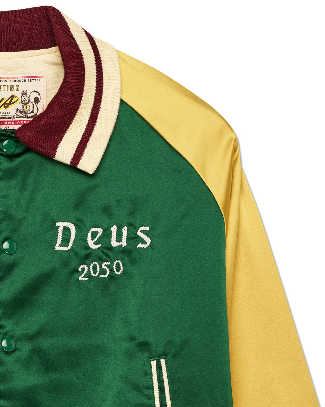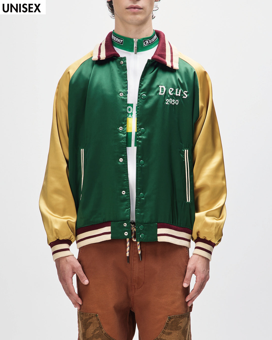 デウス・レコーズの変わらぬ理念のもと、この新しいドロップは巻き戻しと早送りを繰り返しながら、ノスタルジアを表現している。 大げさなシルエットと特注の花柄が、ミリタリスティックでスポーツドリブンなディテールと肩を並べ、個性的な表現を支持する。 ゆったりとしたフィットのサテンジャケット。ヴィンテージな雰囲気のチェーンステッチ刺繍。フロントボタンはグロス仕上げのスナップボタン。襟、裾、袖口にはソフトなウールリブ。リサイクル・ポリエステル・サテン生地を使用。緩めのウォッシュとフェード加工によるエイジングが特徴。