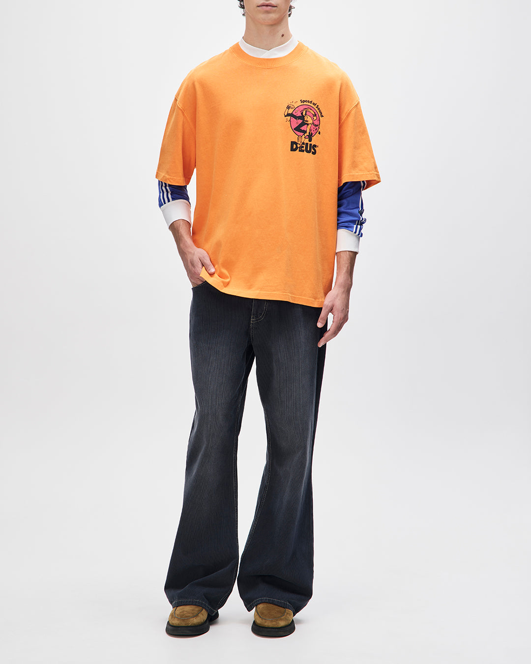 デウス・レコーズの変わらぬ理念のもと、この新しいドロップは巻き戻しと早送りを繰り返しながら、ノスタルジアを表現している。 大げさなシルエットと特注の花柄が、ミリタリスティックでスポーツドリブンなディテールと肩を並べ、個性的な表現を支持する。オーバーサイズフィットのTシャツ、フロントとバックにDEUSアートグラフィック。リサイクルコットン・ジャージー素材。ストーンウォッシュ加工。