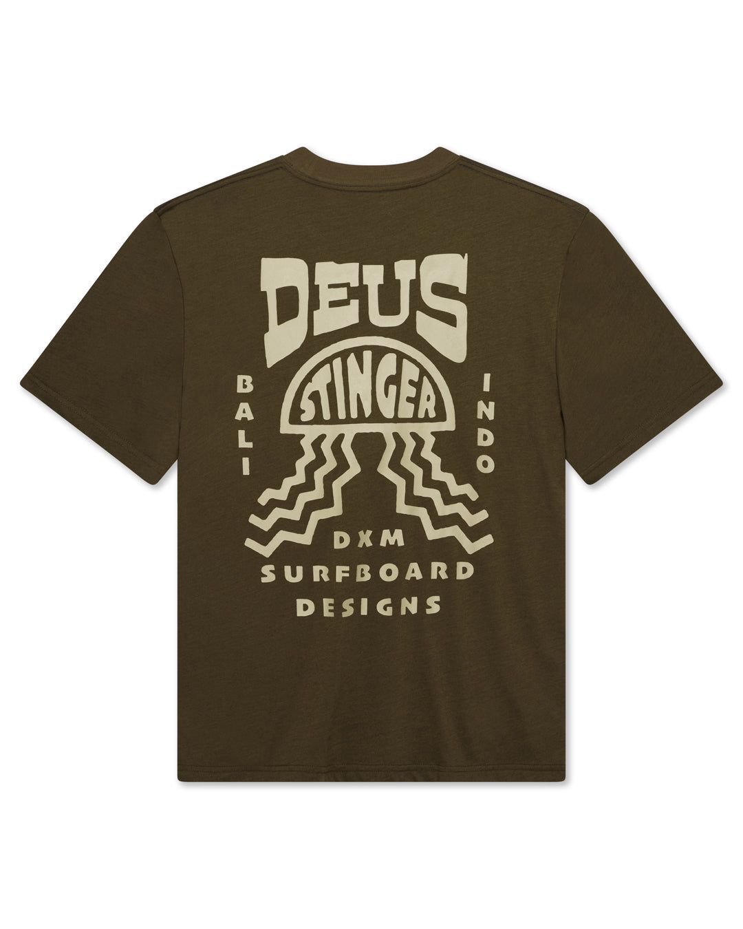 Heavy Leisure(ヘビー・レジャー)は、サーフにインスパイアされた高級素材を使ったジャケット、ライナー、シャツなど、スタイル重視のアウターウェアを紹介している。 Stinger Teeはヘビーウェイトのフリースと控えめなアウターウェアの正確さを融合させている。ボックスフィットのTシャツ。フロントとバックにDEUSロゴアートプリント。ドライな肌触りで速乾性が特徴のコットン・ポリエステルジャージー素材。ガーメント・ウォッシュ加工。
