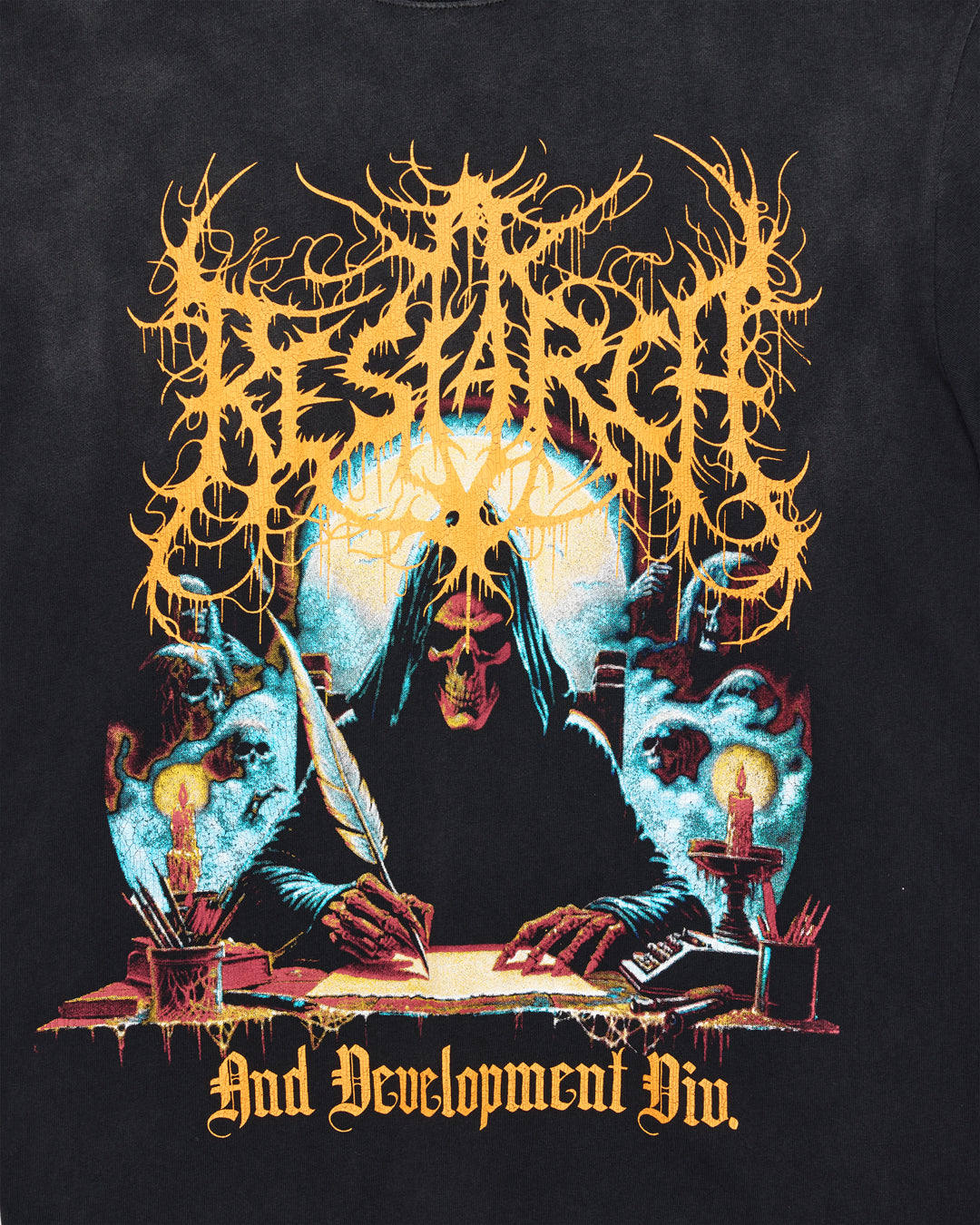 デウス・レコーズの変わらぬ理念のもと、この新しいドロップは巻き戻しと早送りを繰り返しながら、ノスタルジアを表現している。 大げさなシルエットと特注の花柄が、ミリタリスティックでスポーツドリブンなディテールと肩を並べ、個性的な表現を支持する。大きなグラフィックが特徴のヴィンテージ・フィットTシャツ。年代物のロックTをイメージさせるクラックプリント。リサイクル・コットン・ミックス素材。ガーメント・ダイ、ヘビーフェード加工を施しヴィンテージな雰囲気が特徴。