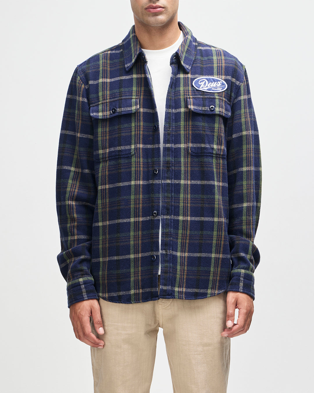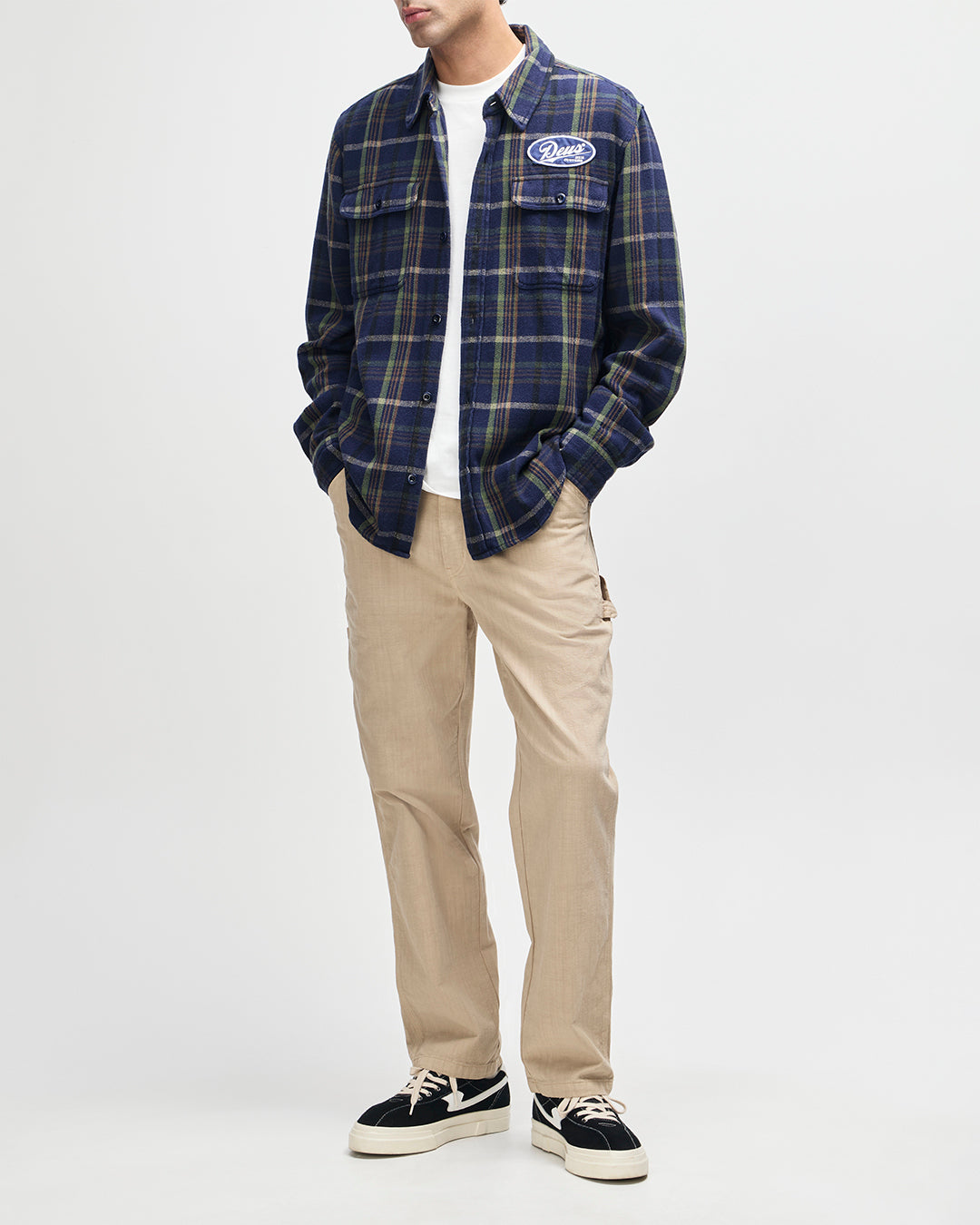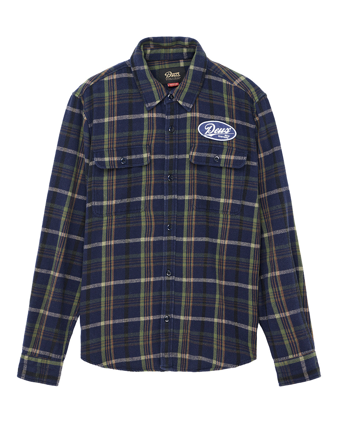 - 胸ポケット上のDEUS刺繍アートパッチ