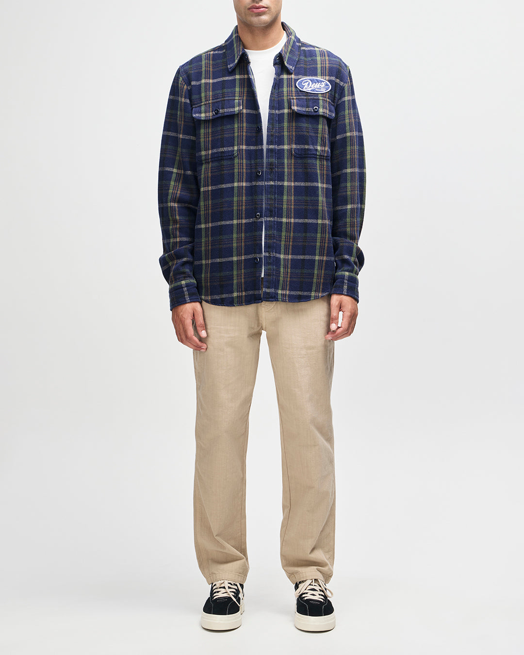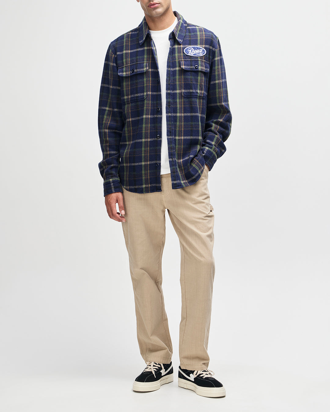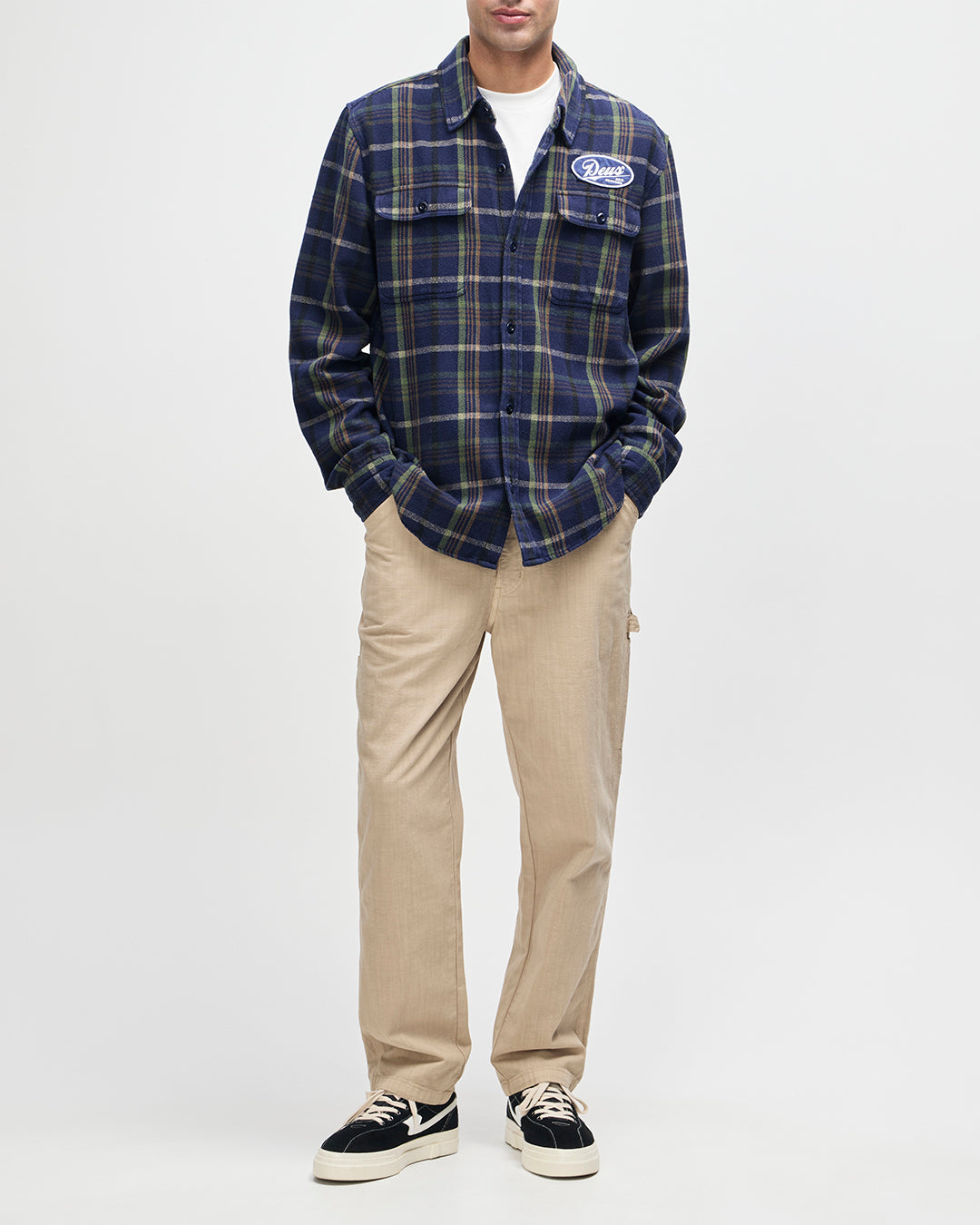 - 胸ポケット上のDEUS刺繍アートパッチ