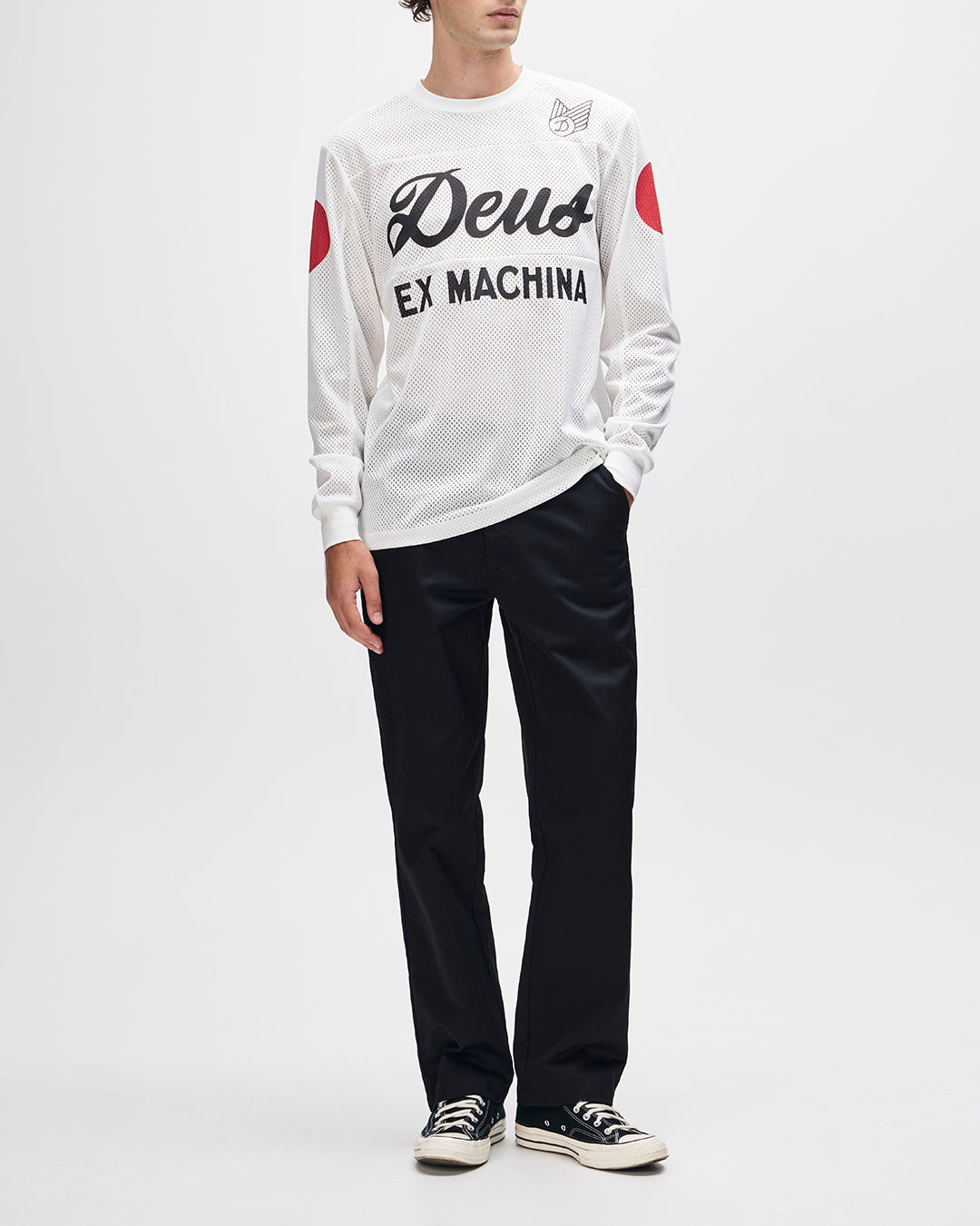 SABER MOTO JERSEYはDEUS EX MACHINA MOTO JERSEY コレクション。レギュラーフィットのフロントプリント。ポリエステルメッシュジャージー素材。ガーメントウォッシュ加工。Designed By Deus House of Simple Pleasures Camperdown, Sydney