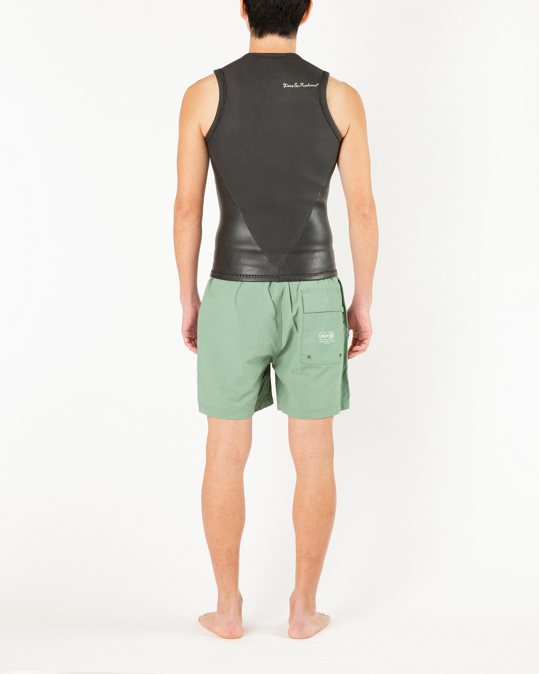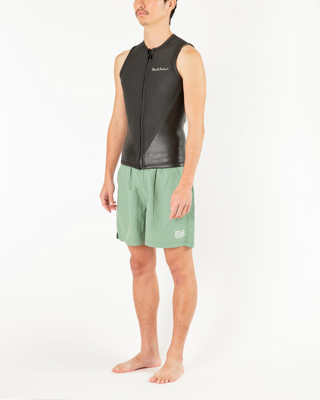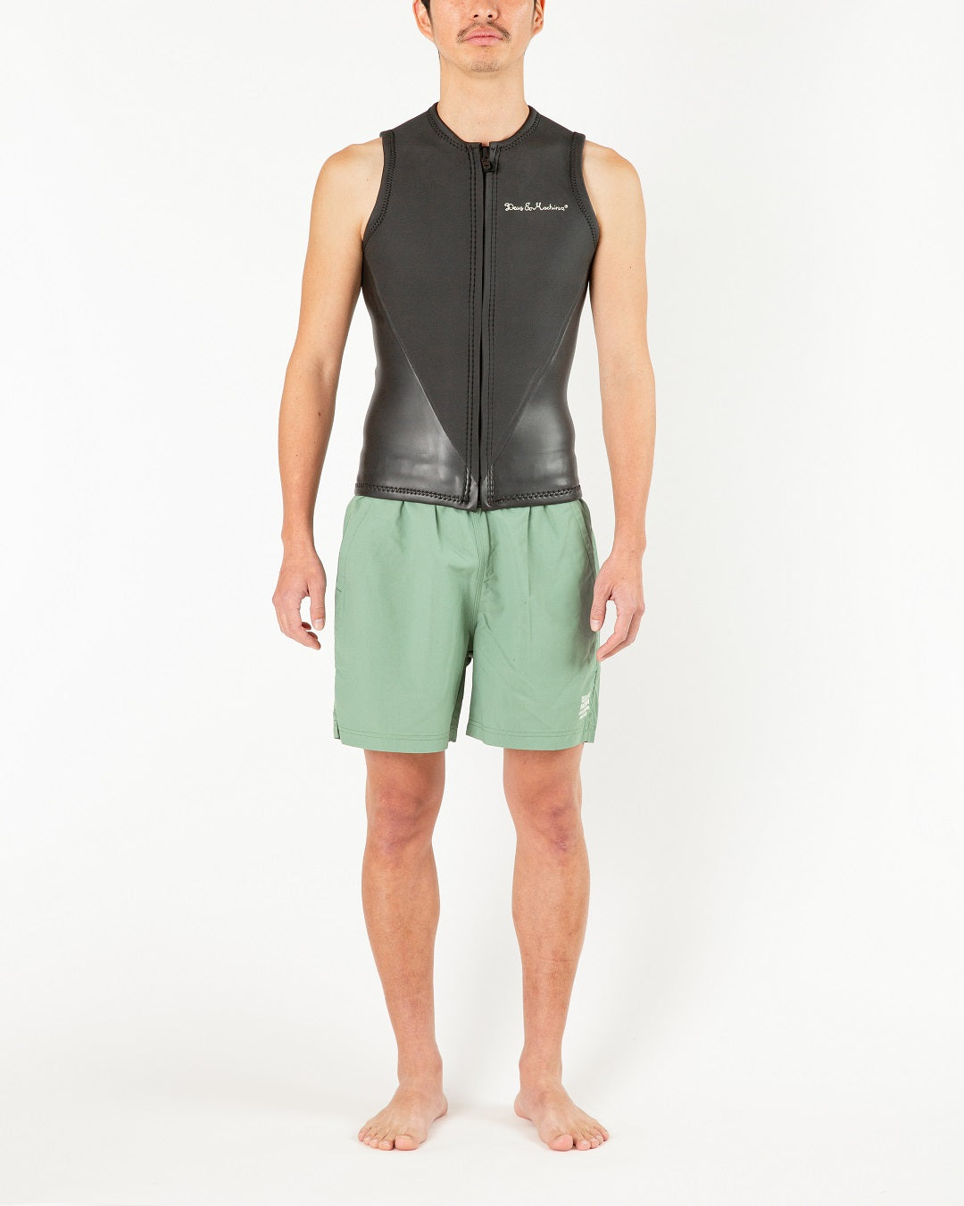 フロントジップタイプのNON SLEEVEのベスト。左胸と右背中肩にスクリプトロゴ使用。2mmMTZラバーMADE IN JAPANマテリアル : 適度な伸縮性を持ちソフトな肌触りが特徴のコストパフォーマンスに優れたマテリアルです。
