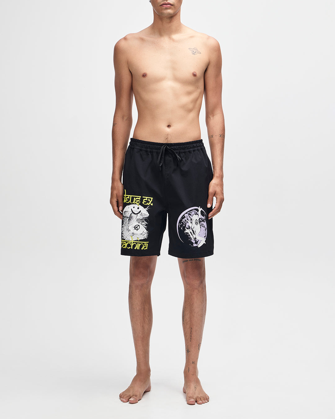 - ルーズフィット、長めの丈のウエストスイムショーツ