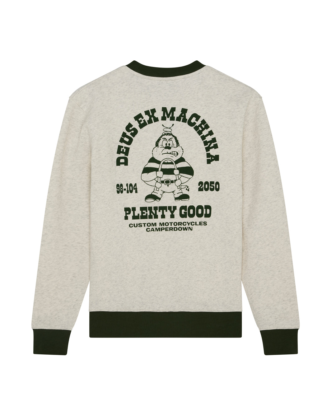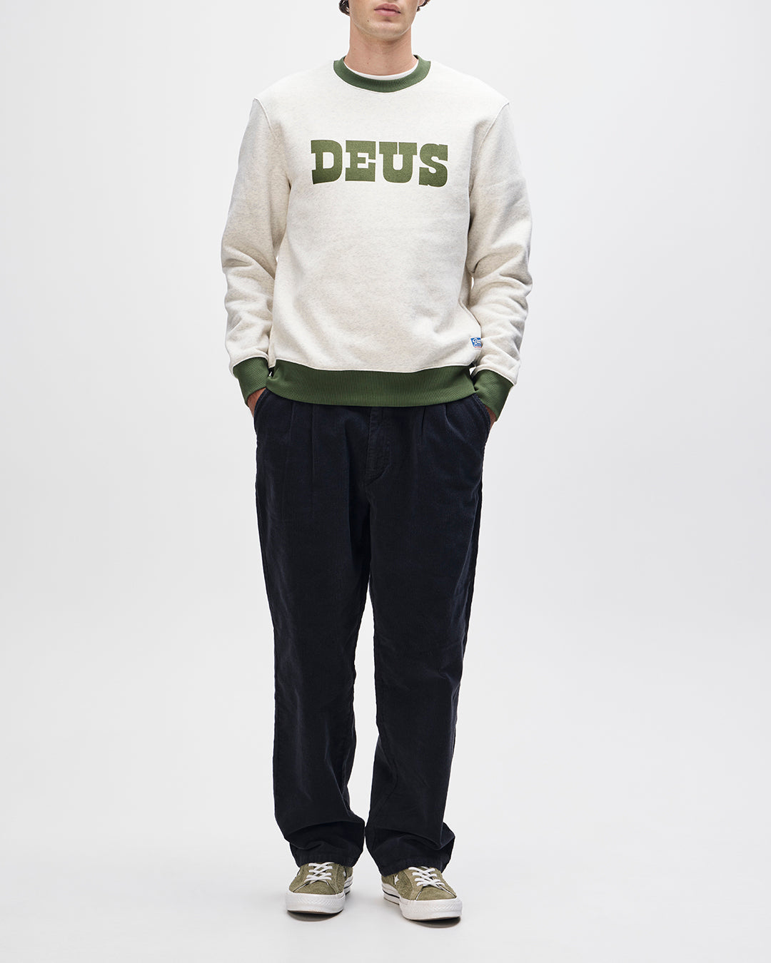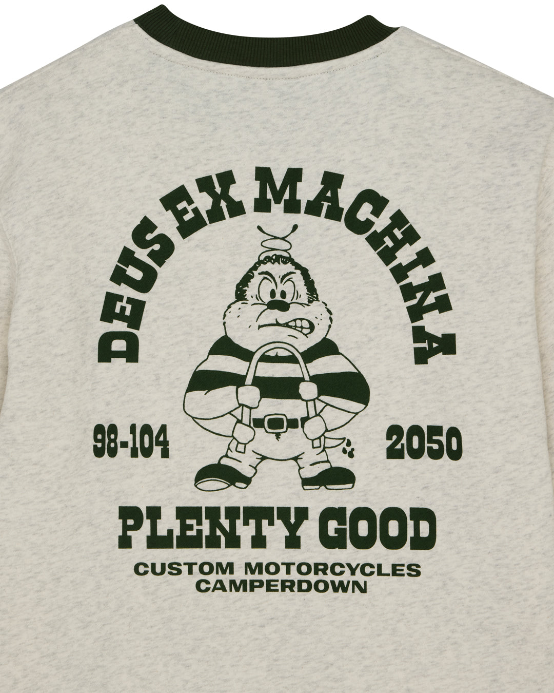 道端のピットストップや忘れ去られたハイウェイで飲むコーヒーが燃料となり、オイルまみれのノスタルジーとともに、充実した日々の感性が奏でられる。 ボックスフィットのPicklock Crewは、90年代のアスレチックな活気をロードサイドの仲間意識に変える。ボックスフィットのクルーネックスウェット。フロントとバックにDEUSアートワークプリント。クラシックな演出のリブバイカラー仕様。リサイクルコットンとリサイクル・ポリエステルの裏起毛バックフリース素材。ストーンウォッシュ加工。
