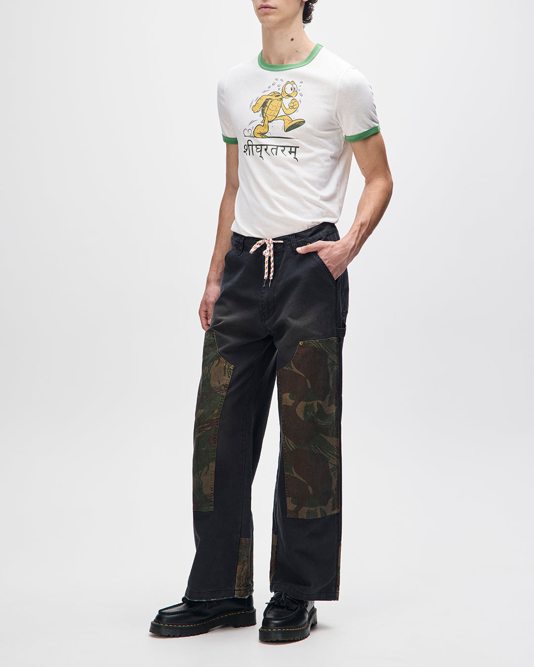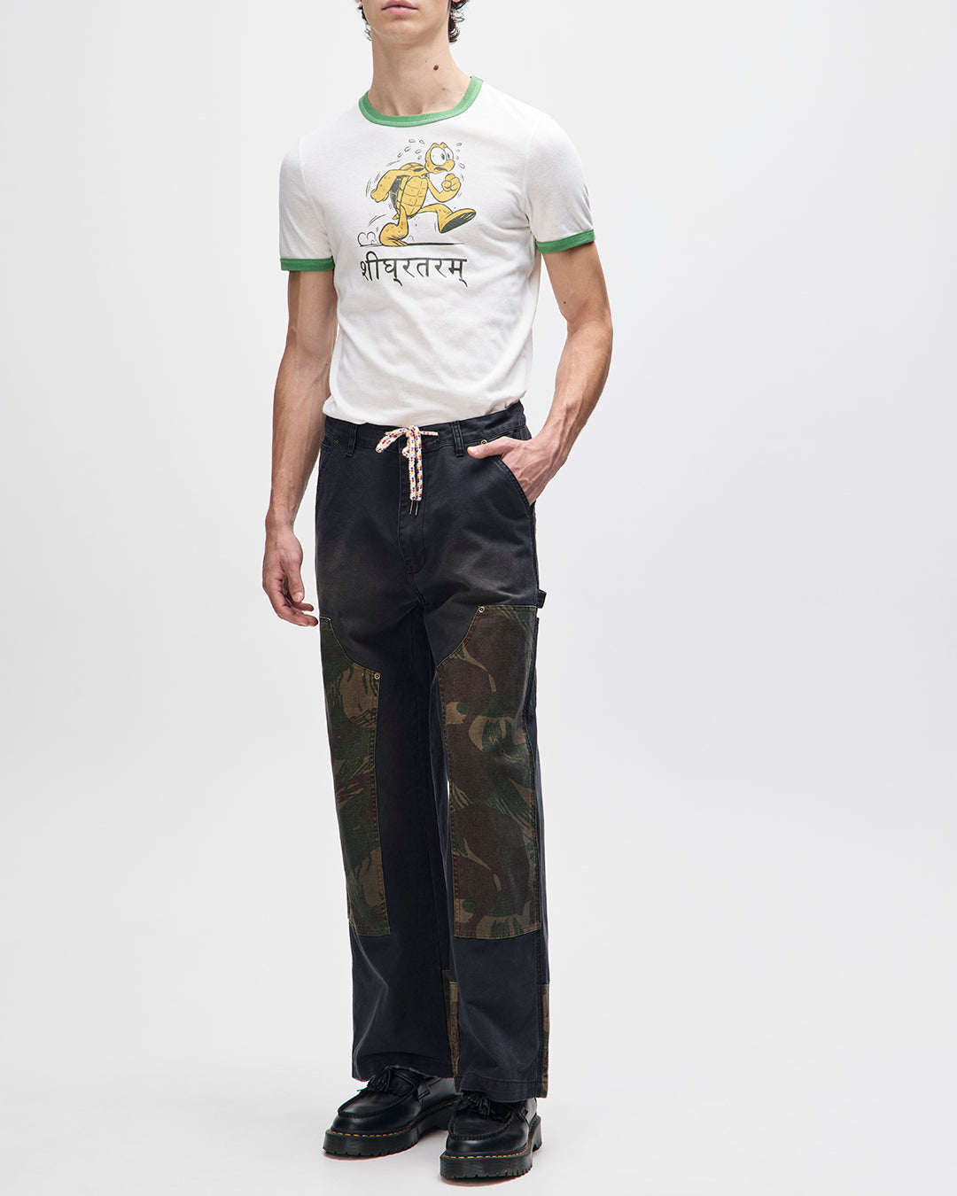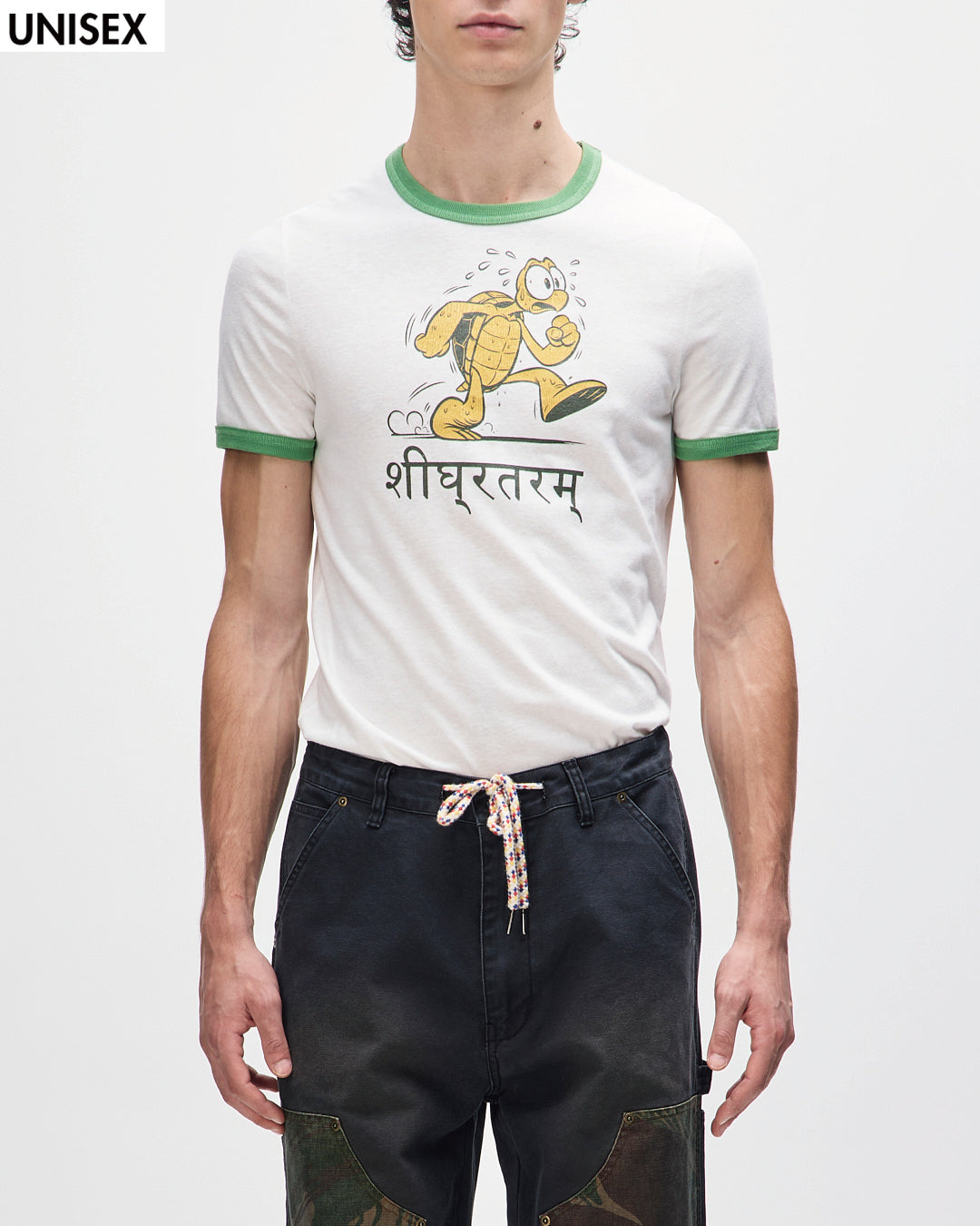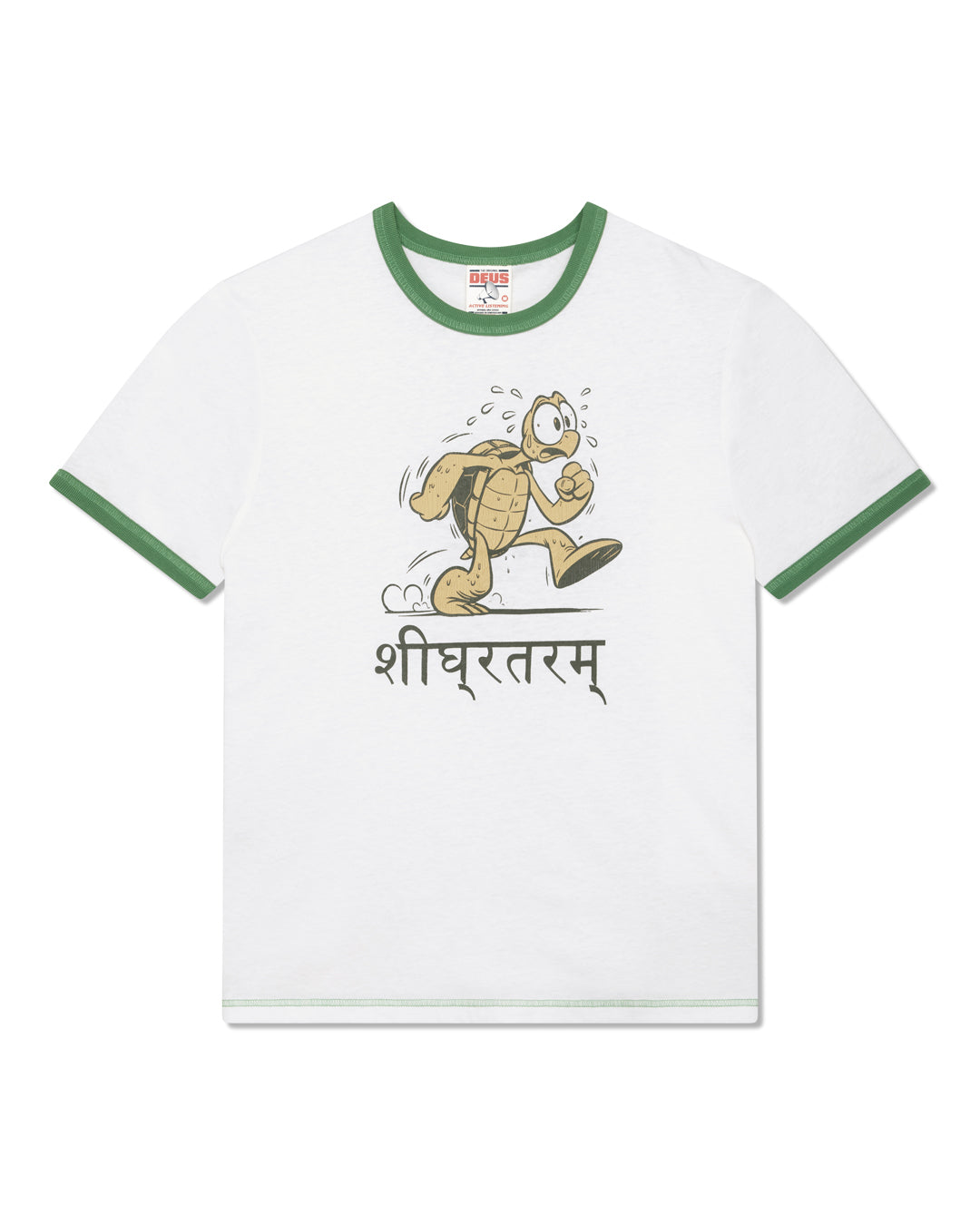 デウス・レコーズの変わらぬ理念のもと、この新しいドロップは巻き戻しと早送りを繰り返しながら、ノスタルジアを表現している。 大げさなシルエットと特注の花柄が、ミリタリスティックでスポーツドリブンなディテールと肩を並べ、個性的な表現を支持する。スリムフィットのリンガーTシャツ。フロントとバックにDEUSオリジナルアートワークプリント。リサイクルコットン、リサイクルポリエステルのミックス素材。ストーンウォッシュ加工。