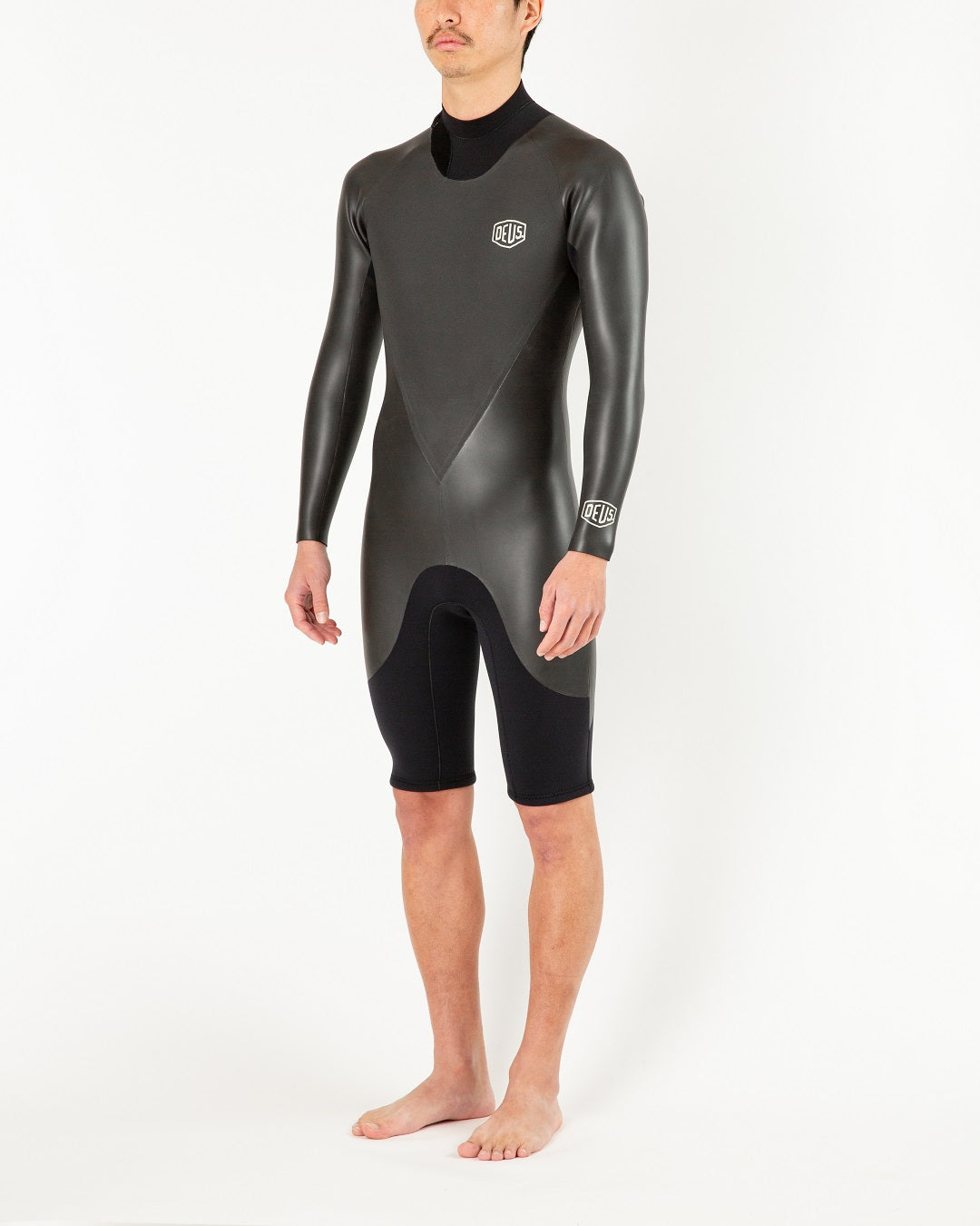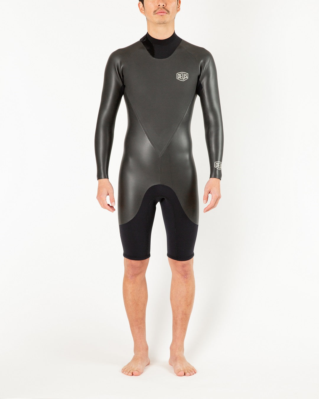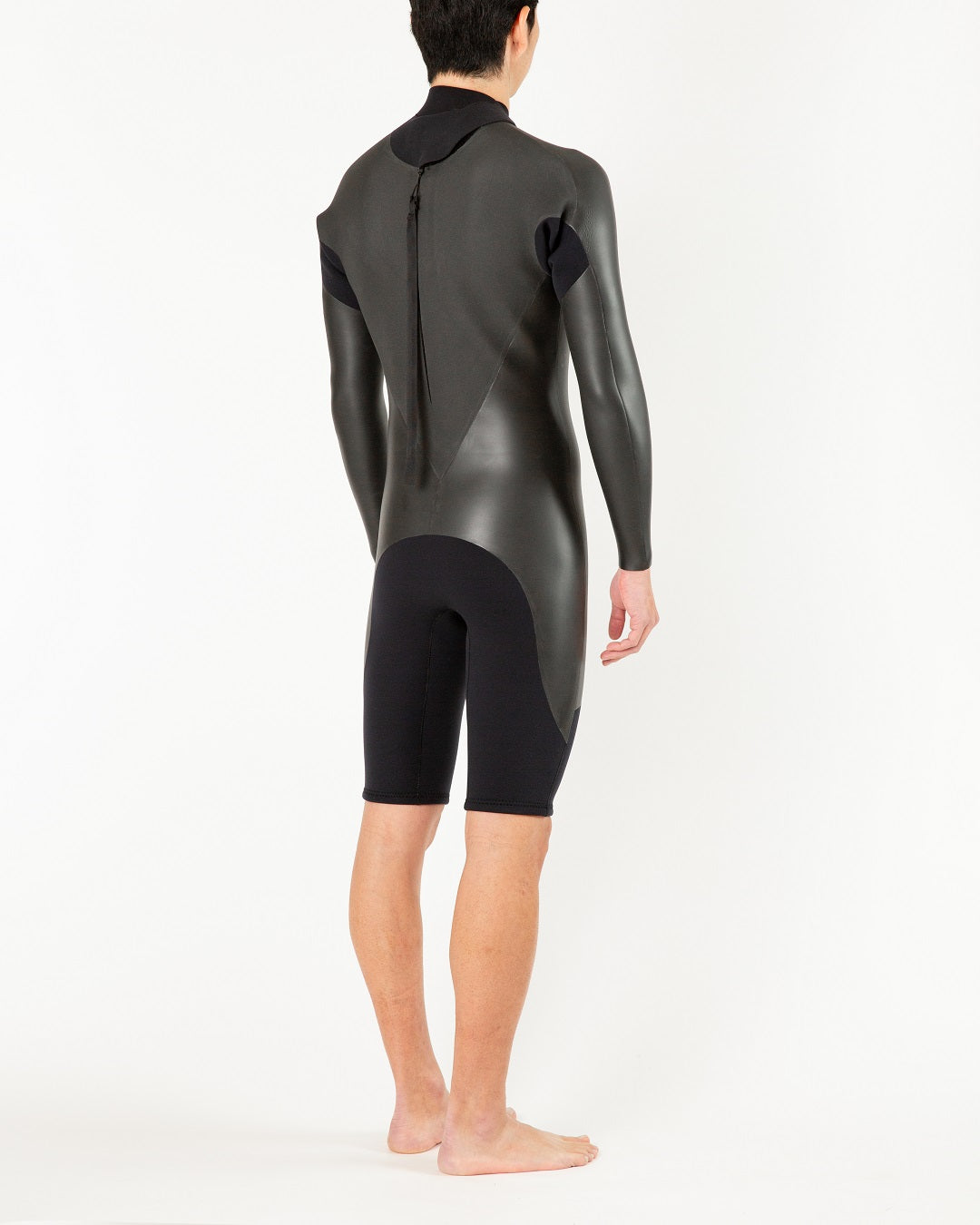 バックジップタイプのLONG SLEEVE SPRING。左胸と左袖にシールドロゴ使用。2mmMTZラバーMADE IN JAPANマテリアル : 適度な伸縮性を持ちソフトな肌触りが特徴のコストパフォーマンスに優れたマテリアルです。