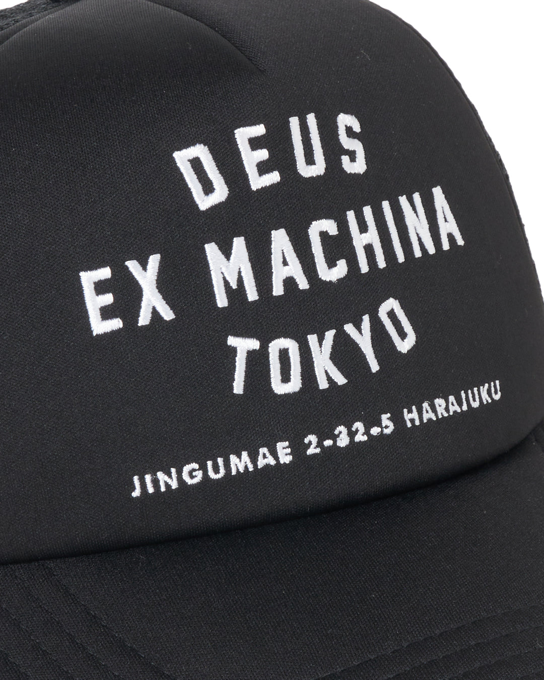 DEUS EX MACHINAクラシックコレクション。DEUS原宿アドレスCAP。フロントはポリエステル、後身はナイロンメッシュ。アジャスター付でサイズ調整可能。