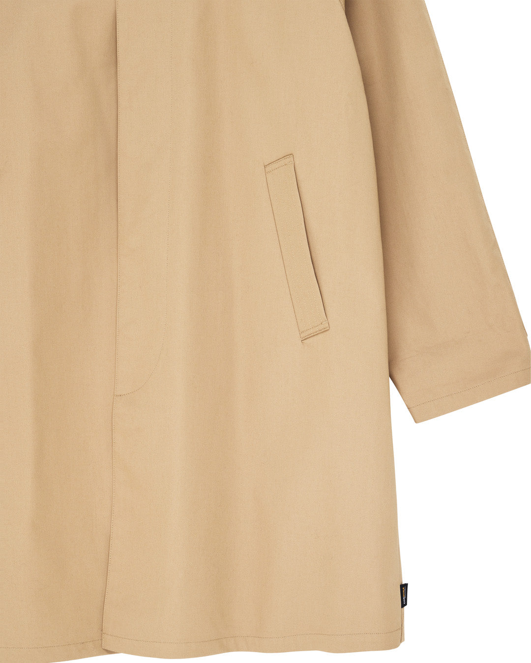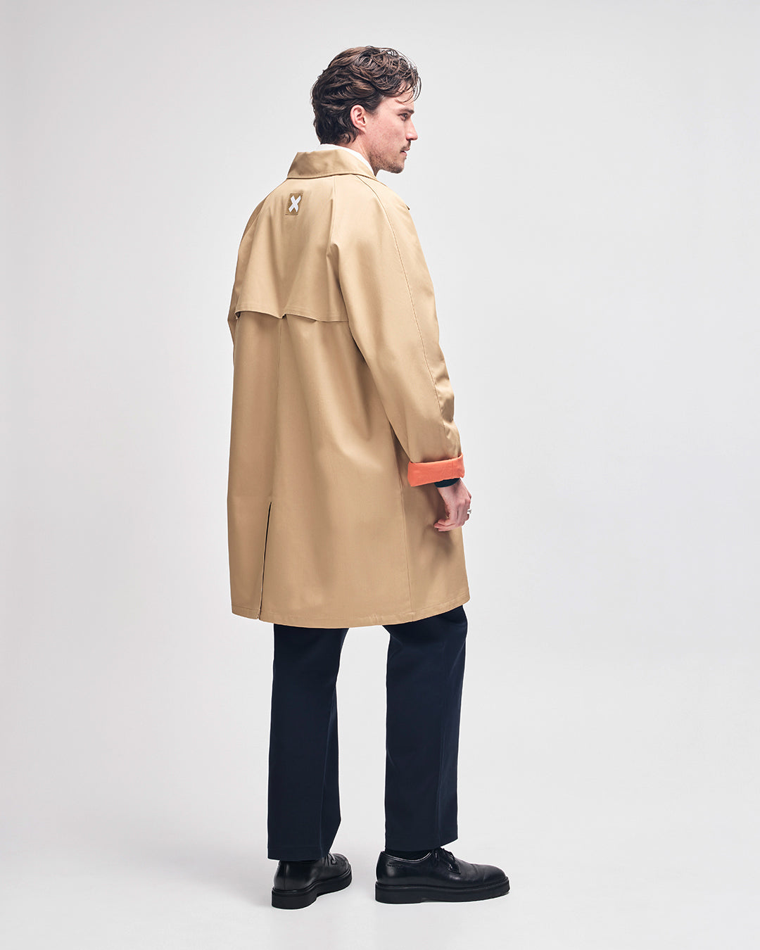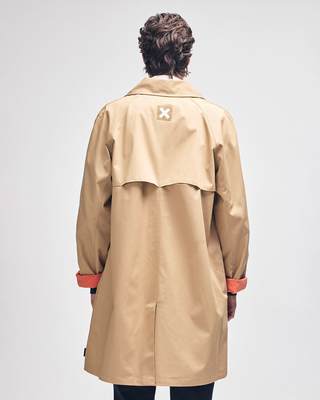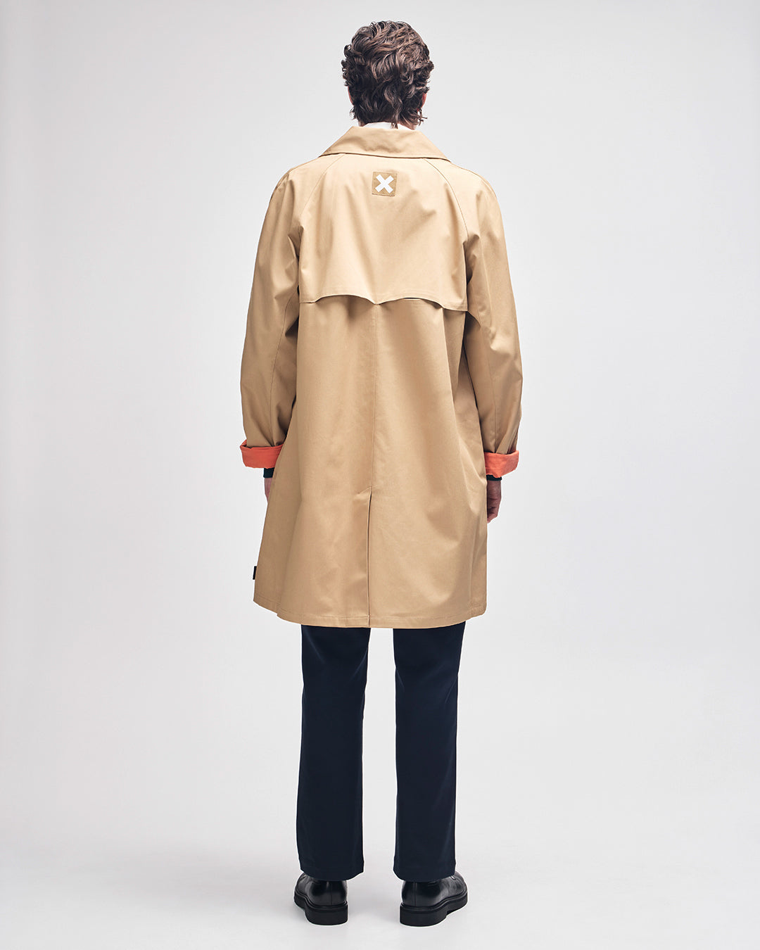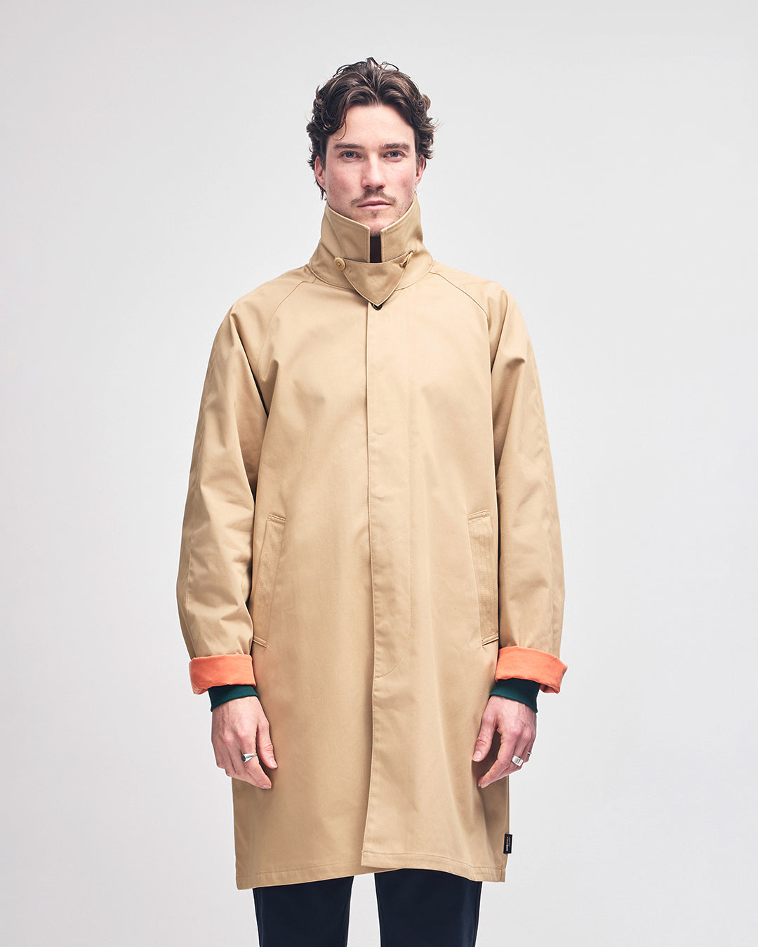 Deus Ex MachinaとMINIは、MINIとDeusのクルマに対する情熱の歴史的な遺産を称えるパートナーシップを結び、レースの伝統と現代的なデザイン感覚を見事に融合させたコラボレーションを実現した。その中心となるのは、Deus Ex Machinaによってカスタマイズされた、多くの人々に愛されているMINI John Cooper Worksである。リラックスフィットのミドル丈レインマック。裏地はヤーデージ柄。フロント中央の前立てにアートスナップ、背中にアートラベル、下部のウェルトポケット、フロント中央の前立ては隠しスナップボタン付き、通気性を確保する二重構造のバックヨークパネル、動きやすさを考慮した背中の下部ベント、コットンとコーデュラの混紡素材で、裏地には防水ジャージーがボンディングされている。